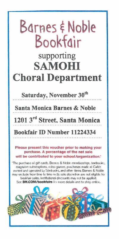 Can’t make it on November 30th? From 11/30/2013 – 12/05/2013 support Samohi Choirs with your online purchases at